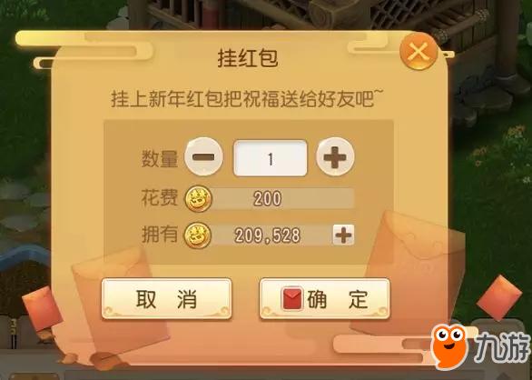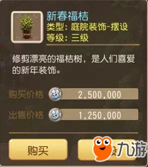 活动规则:各位少侠可以在庭院装饰的节日系列摆设中购买福桔树,并花费金币悬挂红包以供好友领取。