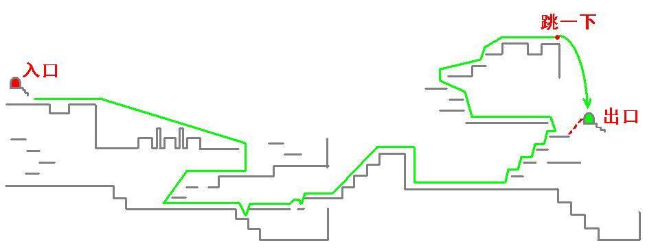 红色的虚线所示之处你已经可以看到出口了,但是跳不上去