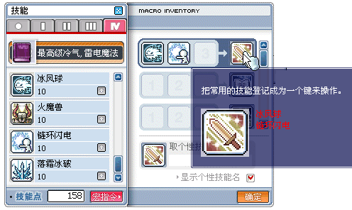 第二步:将你常用的技能拖到一个技能栏中,这样你常用的技能便登记为一个键来操
