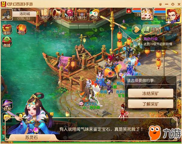 当我们的等级达到60级并且完成了洛阳城引导任务以后,就可以找采矿师父苏灵石学习采矿技能。学会采矿技能后可以在各个场景挖矿,获得的产品用于石艺技能的生产,也可以摆摊出售换取金币。
