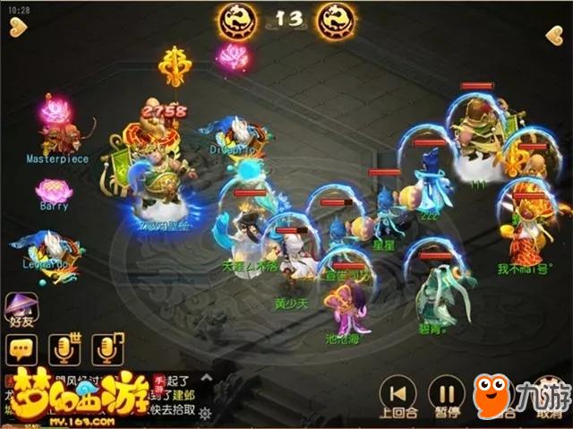 观战方方寸顺利获得全场一速,想要先手封印对战方普陀,不给对战方普陀为队友施加灵动九天提升法伤的机会,可惜却没有封中。