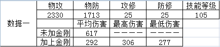 由数据一得:加上金刚后伤害降低了:617-292=325点。