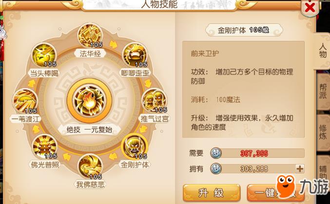 1、金刚护体增加的物理防御=技能等级*3