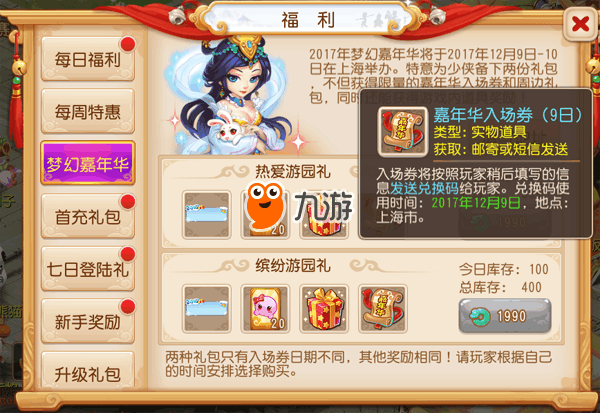 购买热爱游园礼的少侠,可于12月9日进入嘉年华现场。