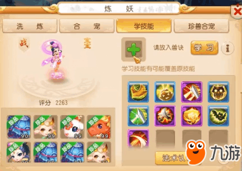 先来看看这只可爱的芙蓉仙子宝宝,作为一个有9个技能格子的宝宝,可以说是非常骄傲了,话不多说,我们开始打书吧~