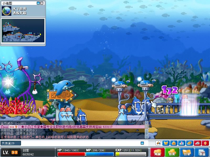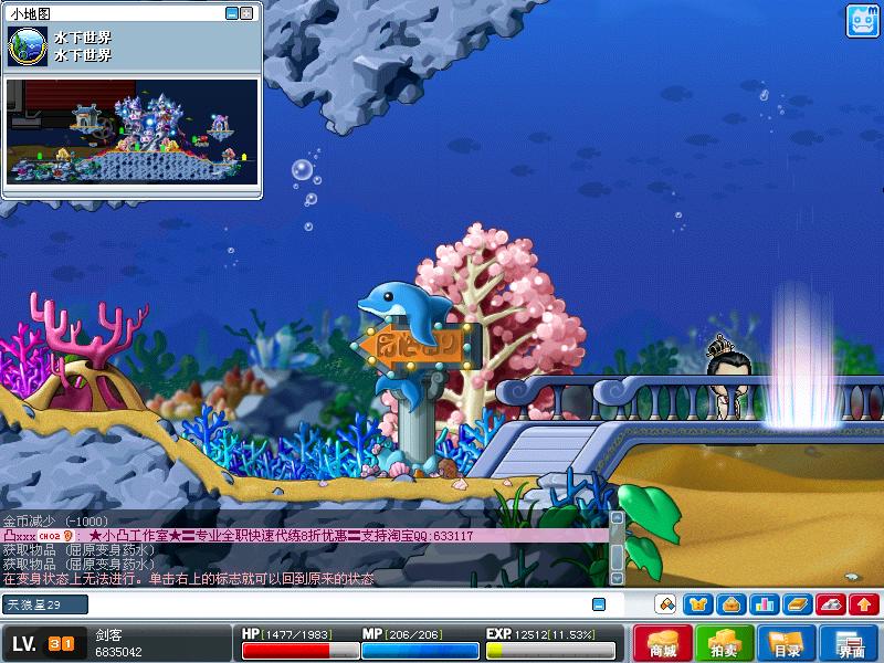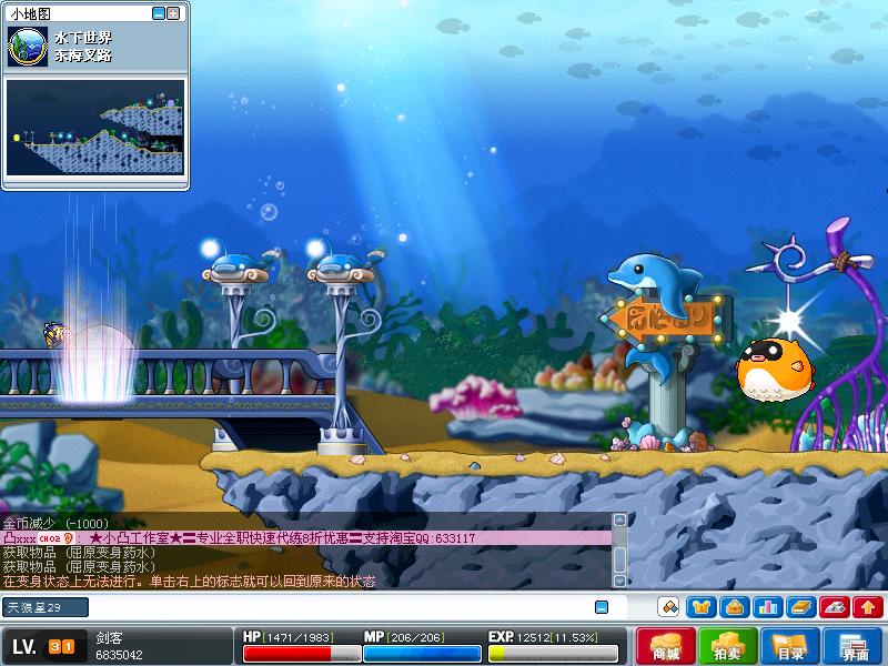 使用屈原药水以后,一出到海底城市外的地图和雪域的地图,如果没有使用空气铃或绿豆粥的话,会被减血,变身状态取消。